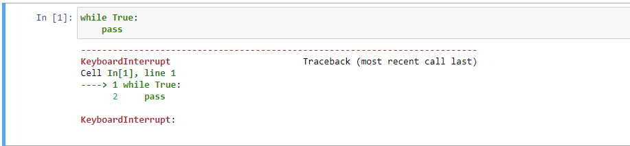 Zdarzyć się może, że nasz kod będzie wykonywać się długo, albo znajdziemy w nim błąd w trakcie jego wykonywania. Na przykład tworząc nieskończoną pętlę: